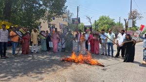 भारतीय जनता पार्टी युवा मोर्चा ने नारी शक्ति बंदन के असफल होने पर इंडी गठबंधन और कांग्रेस के नेता राहुल गांधी का स्थानीय पीएम श्री संजय गांधी महाविद्यालय तिराहे पर जिला पंचायत अध्यक्ष मंजू राम जी सिंह के मुख्य आतिथ्य एवं युवा मोर्चा जिला अध्यक्ष निशांत मिश्रा की अगुवाई में पुतला दहन कर समूचे इंडी गठबंधन के खिलाफ आक्रोश व्यक्त किया।